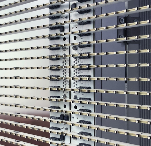 | 像素密度: 32768 cd/m2 | 通透率: 70% | 箱体尺寸: 500mm*1000mm |